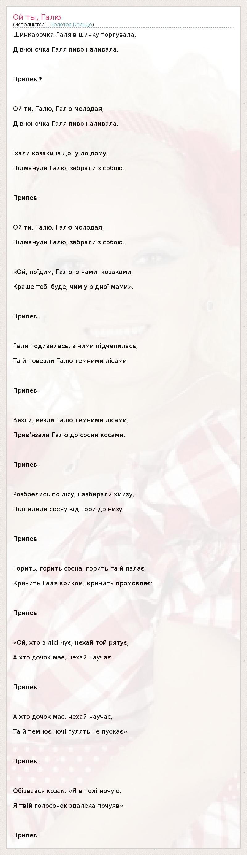 А как ты думаешь, о чем песня "Ой ты, Галю" ?