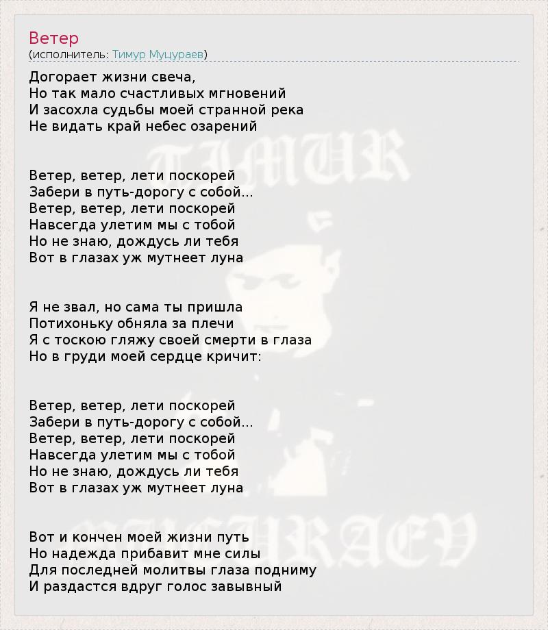 А как ты думаешь, о чем песня "Ветер" ?