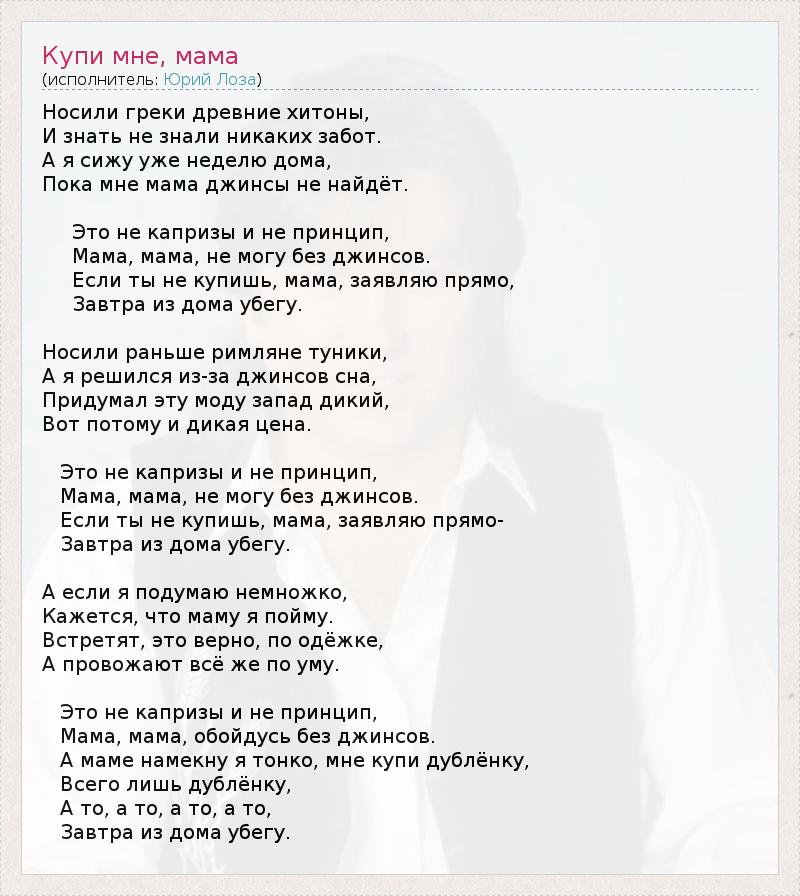 А как ты думаешь, о чем песня "Купи мне, мама" ?