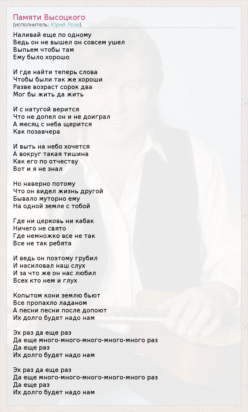 А как ты думаешь, о чем песня "Памяти Высоцкого" ?