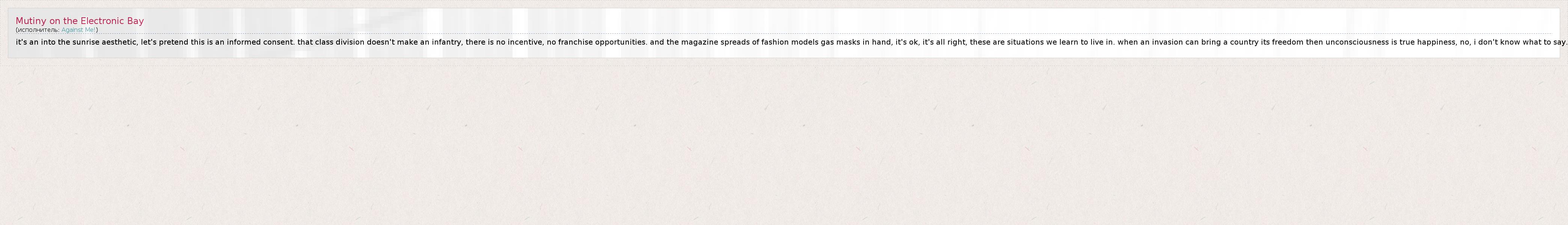 А как ты думаешь, о чем песня "Mutiny on the Electronic Bay" ?