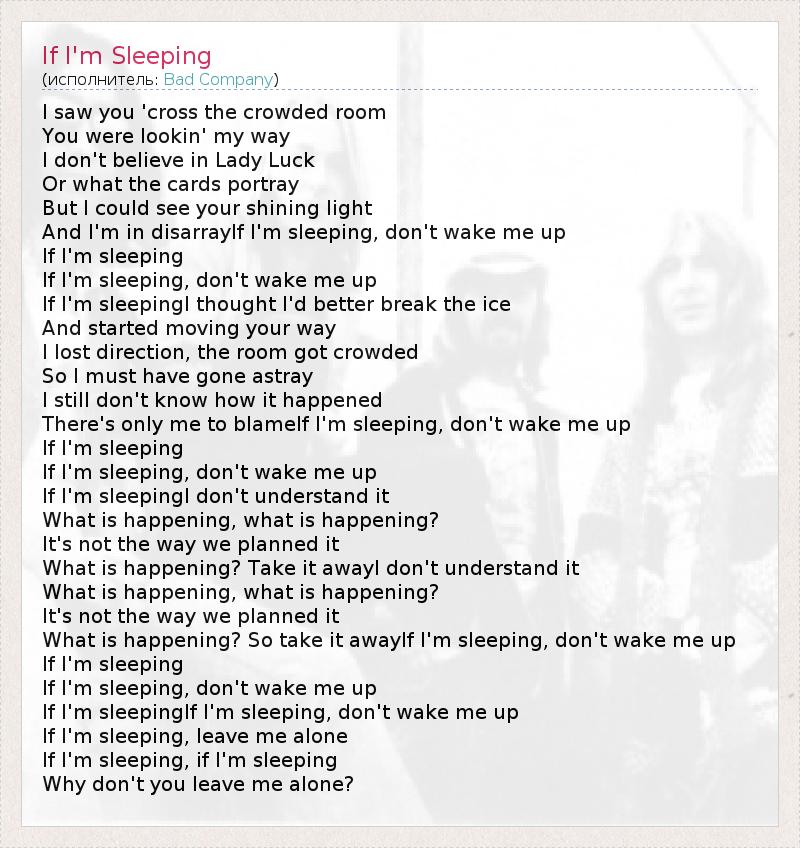 If I'm sleepingIf I'm sleeping, don't wake me up