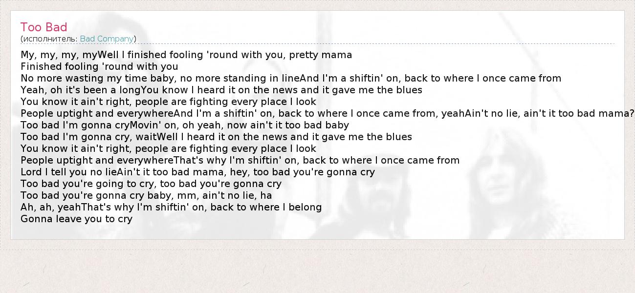 Too bad I'm gonna cryMovin' on, oh yeah, now ain't it too bad baby