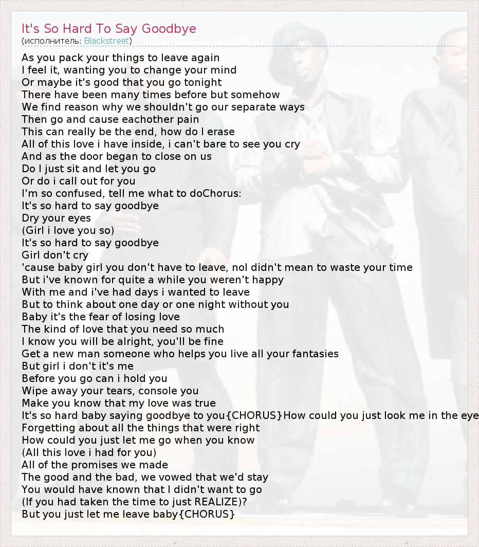 А как ты думаешь, о чем песня "It's So Hard To Say Goodbye" ?