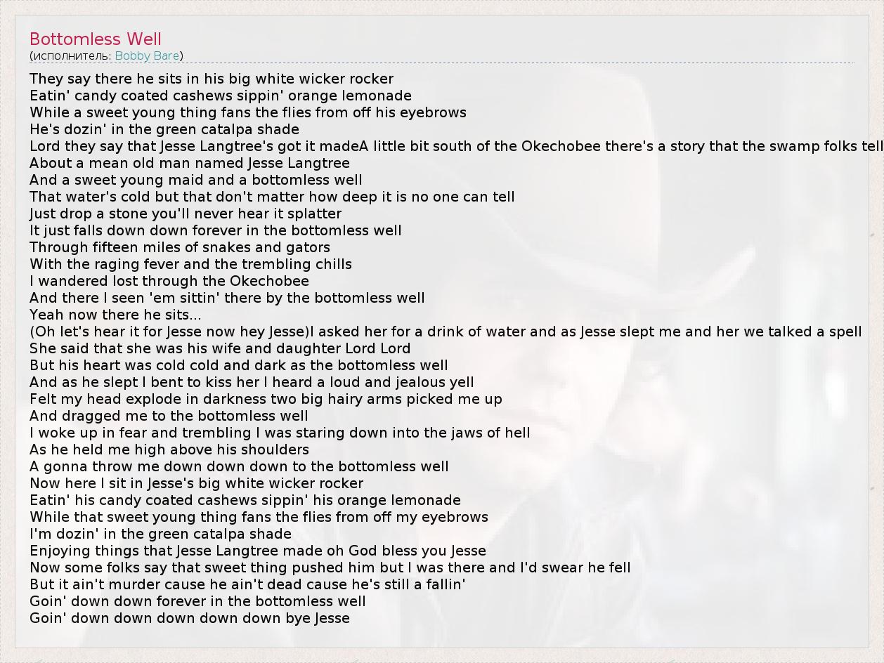 А как ты думаешь, о чем песня "Bottomless Well" ?