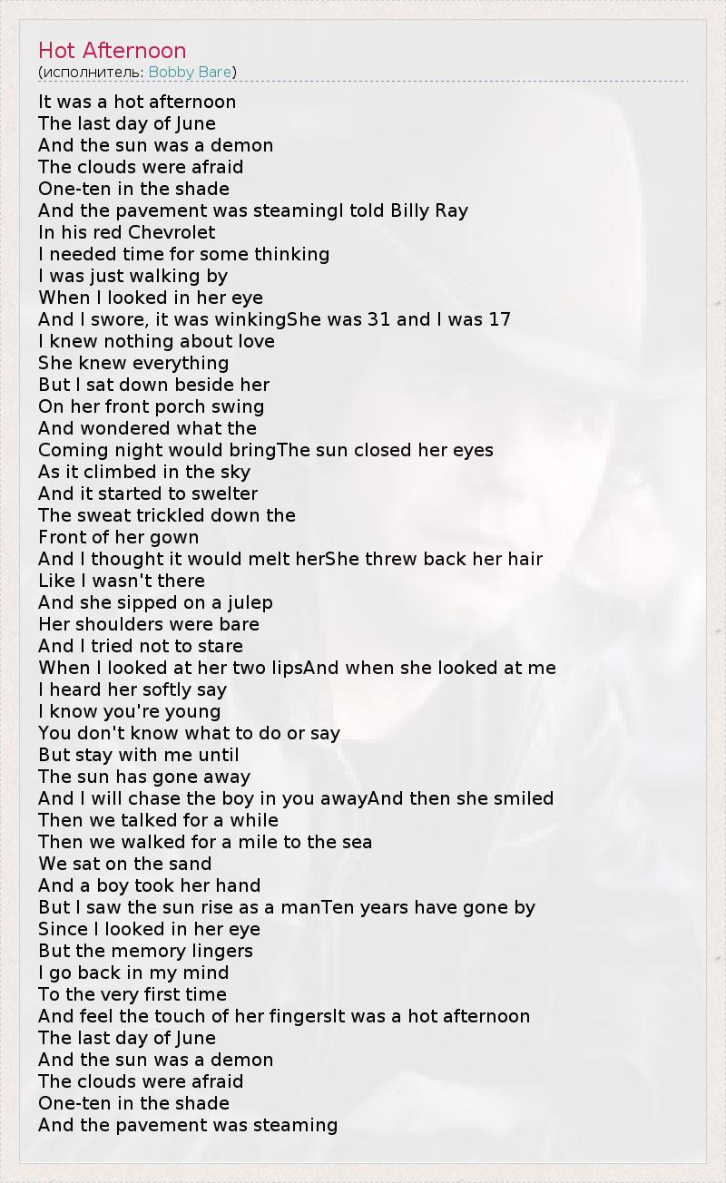 А как ты думаешь, о чем песня "Hot Afternoon" ?