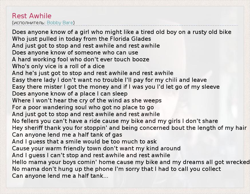 А как ты думаешь, о чем песня "Rest Awhile" ?