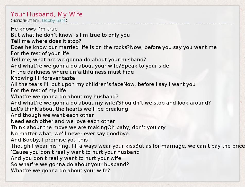 А как ты думаешь, о чем песня "Your Husband, My Wife" ?
