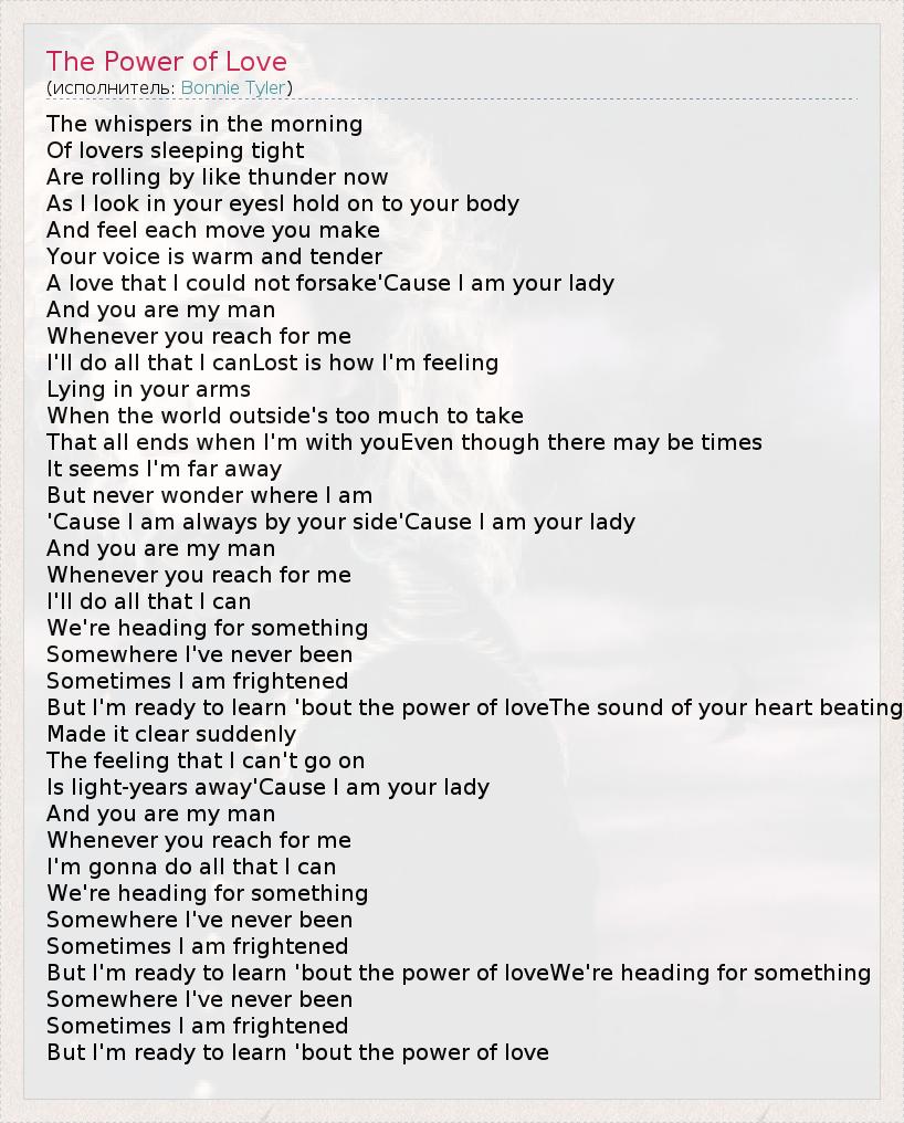 А как ты думаешь, о чем песня "The Power of Love" ?