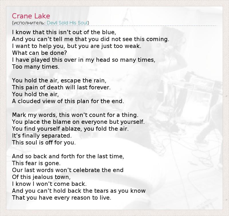 А как ты думаешь, о чем песня "Crane Lake" ?