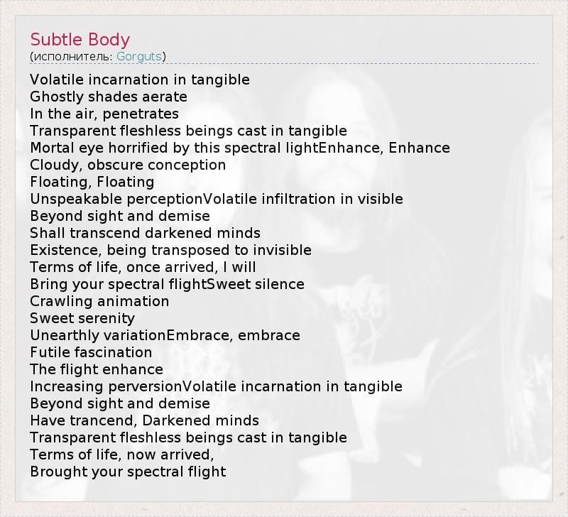 А как ты думаешь, о чем песня "Subtle Body" ?