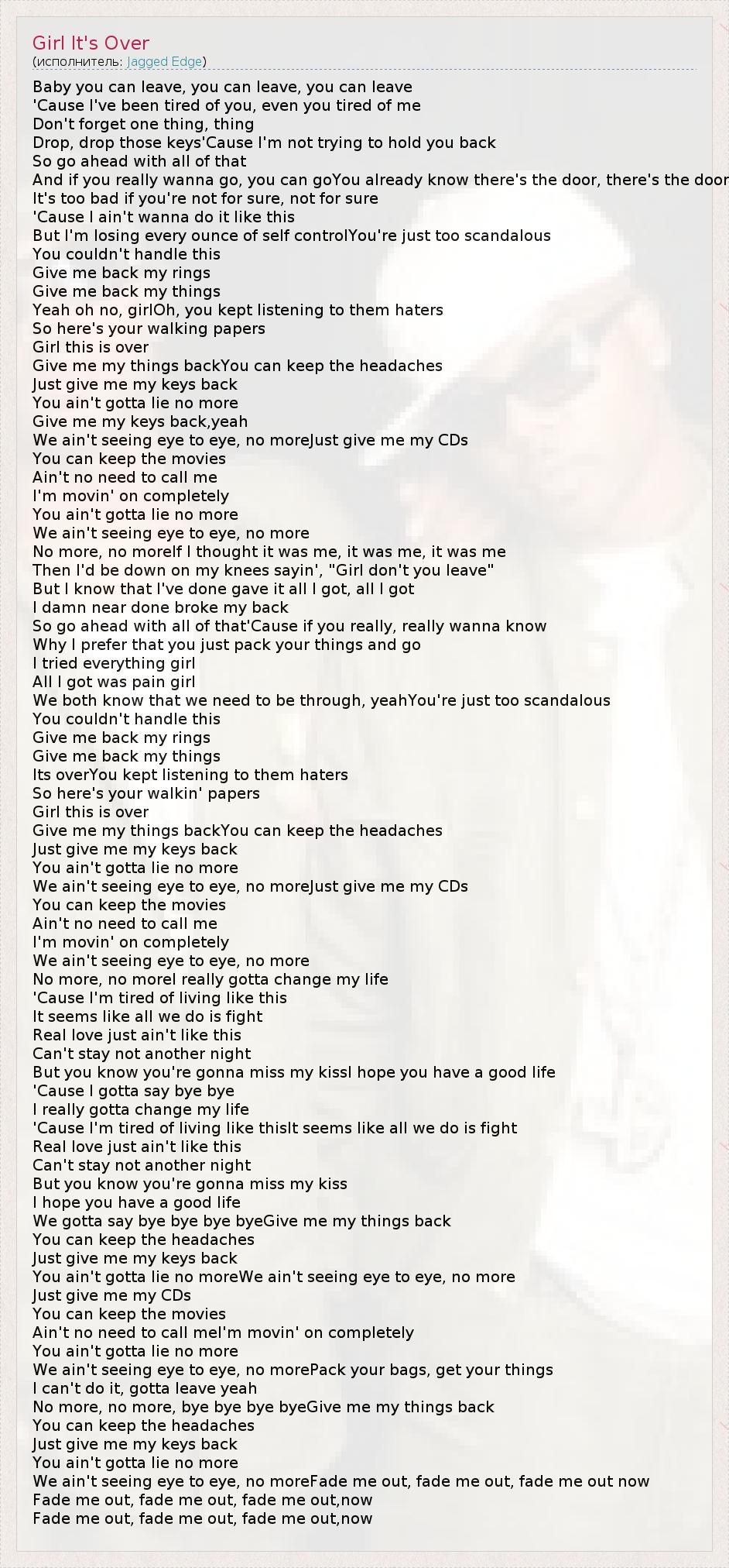 А как ты думаешь, о чем песня "Girl It's Over" ?