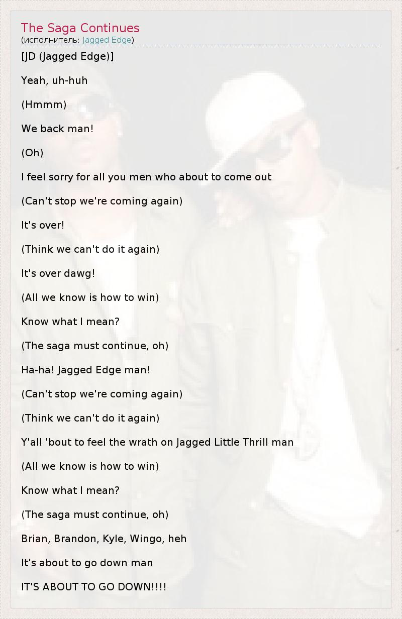 Это интересно:Jagged Edge - американская R&B певческая группа, которая первоначально подписалась через Со Со Деф Рекордс Джермана Дюпри на Коламбиа Рекордс. Группа состоит из близнецов - лидирующих певцов Брайана Кеси (прозванного Браско) и Брендона Кеси (Кейса Динеро) (оба рождены 13 октября 1978), Кайла Нормана (Куик), и Ричарда Уинго (Уинго). Уинго позже присоединился к группе после того как Канди Баррусс... продолжение