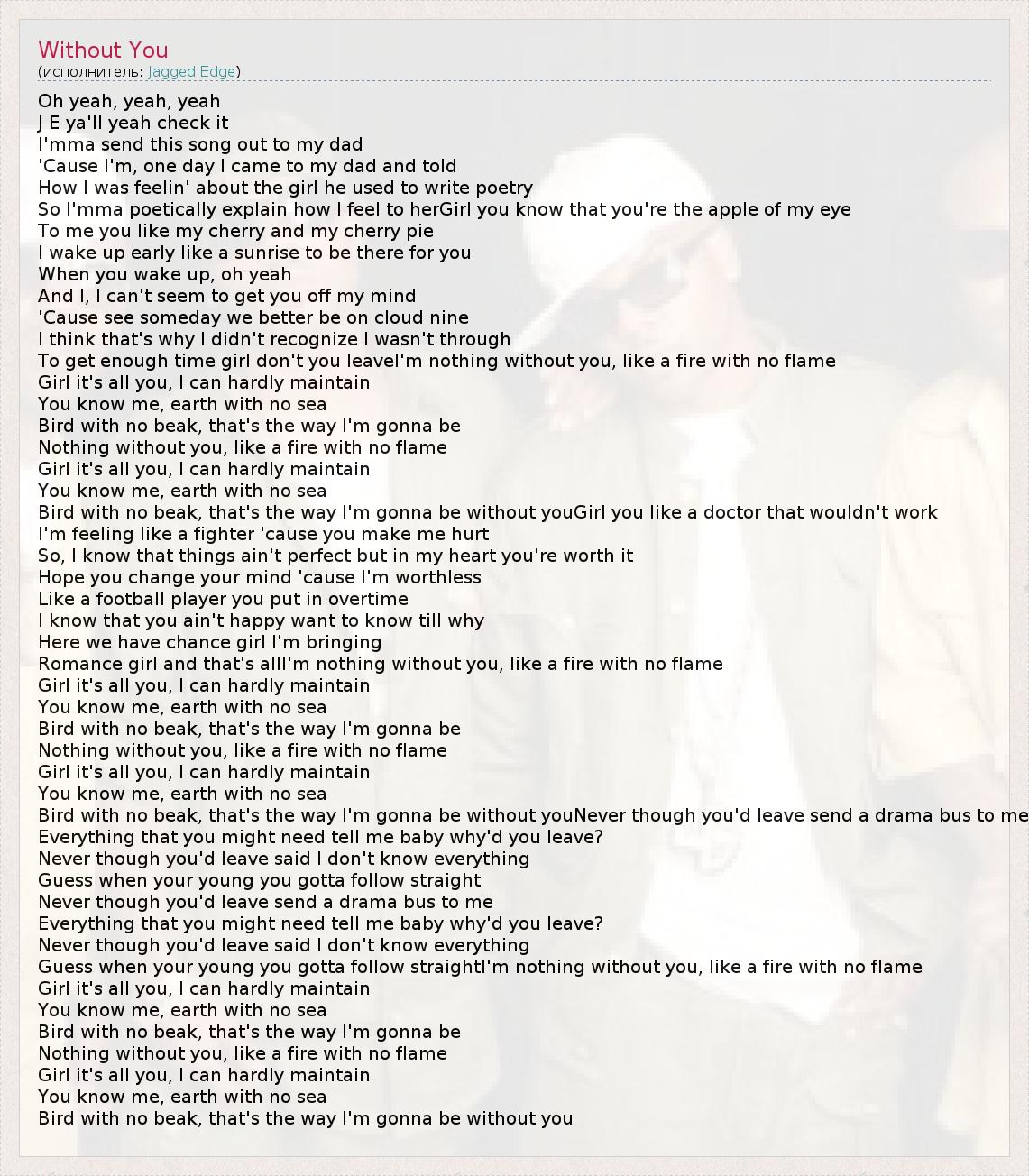 To get enough time girl don't you leaveI'm nothing without you, like a fire with no flame