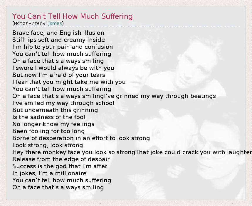 А как ты думаешь, о чем песня "You Can't Tell How Much Suffering" ?
