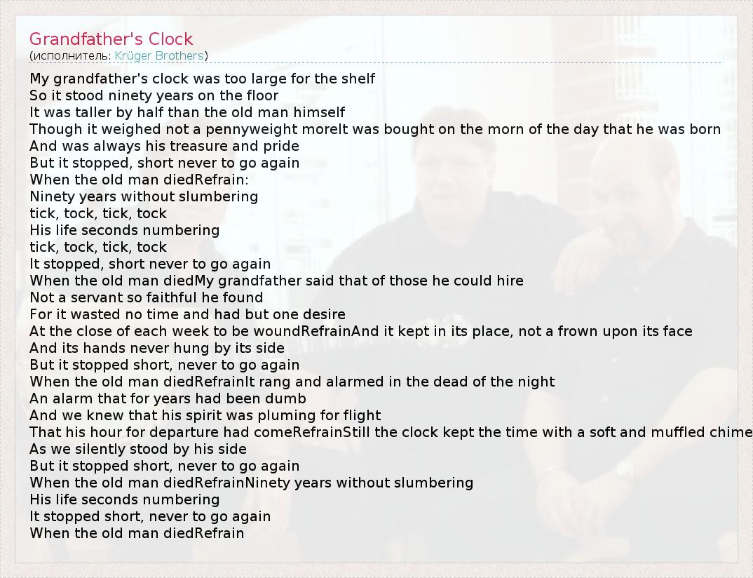 А как ты думаешь, о чем песня "Grandfather's Clock" ?