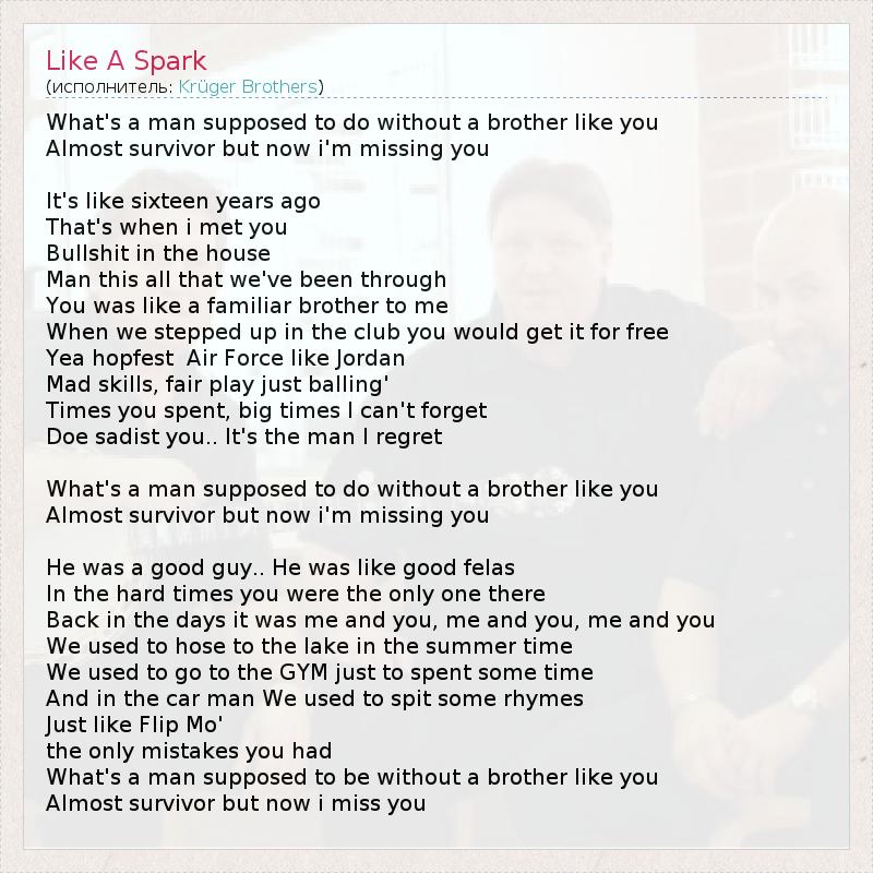 А как ты думаешь, о чем песня "Like A Spark" ?