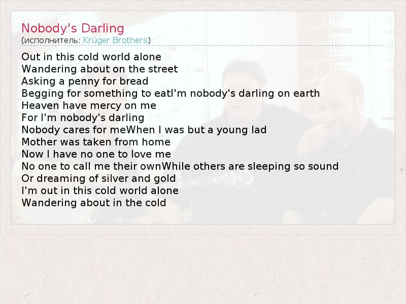 А как ты думаешь, о чем песня "Nobody's Darling" ?