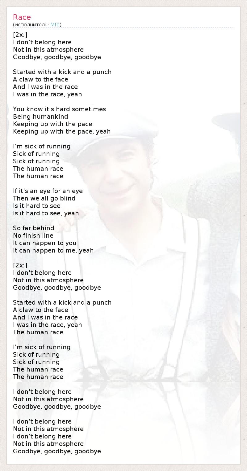 1 - обыгрываются значения слова race - 1) гонка; 2) раса