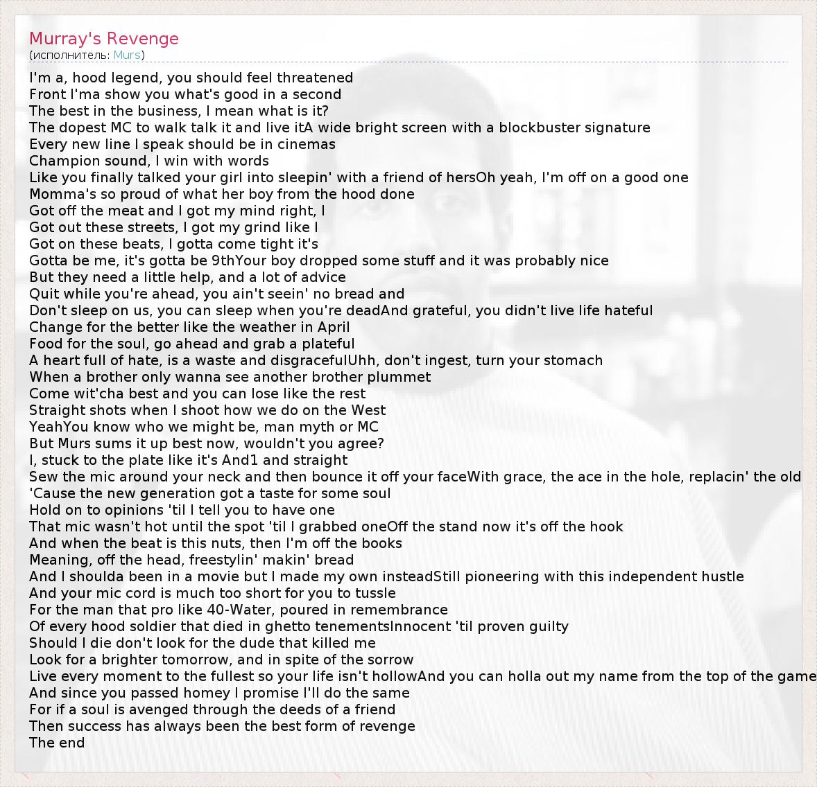 А как ты думаешь, о чем песня "Murray's Revenge" ?