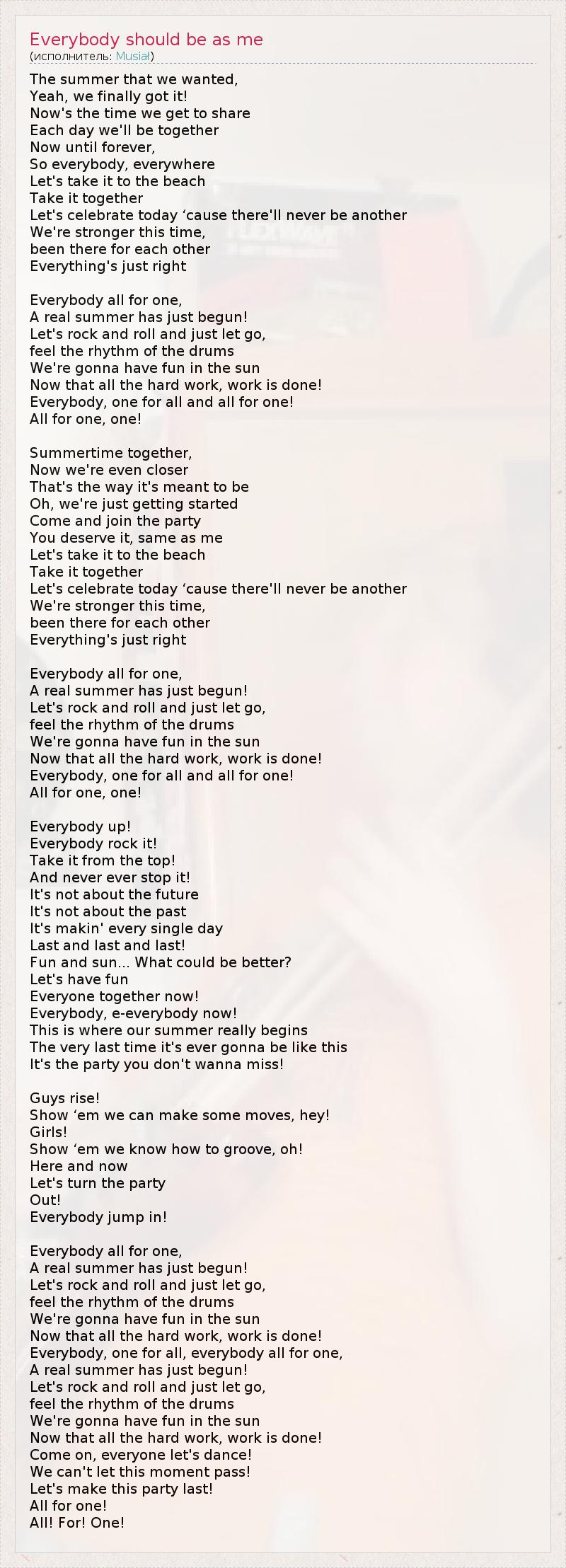 А как ты думаешь, о чем песня "Everybody should be as me" ?