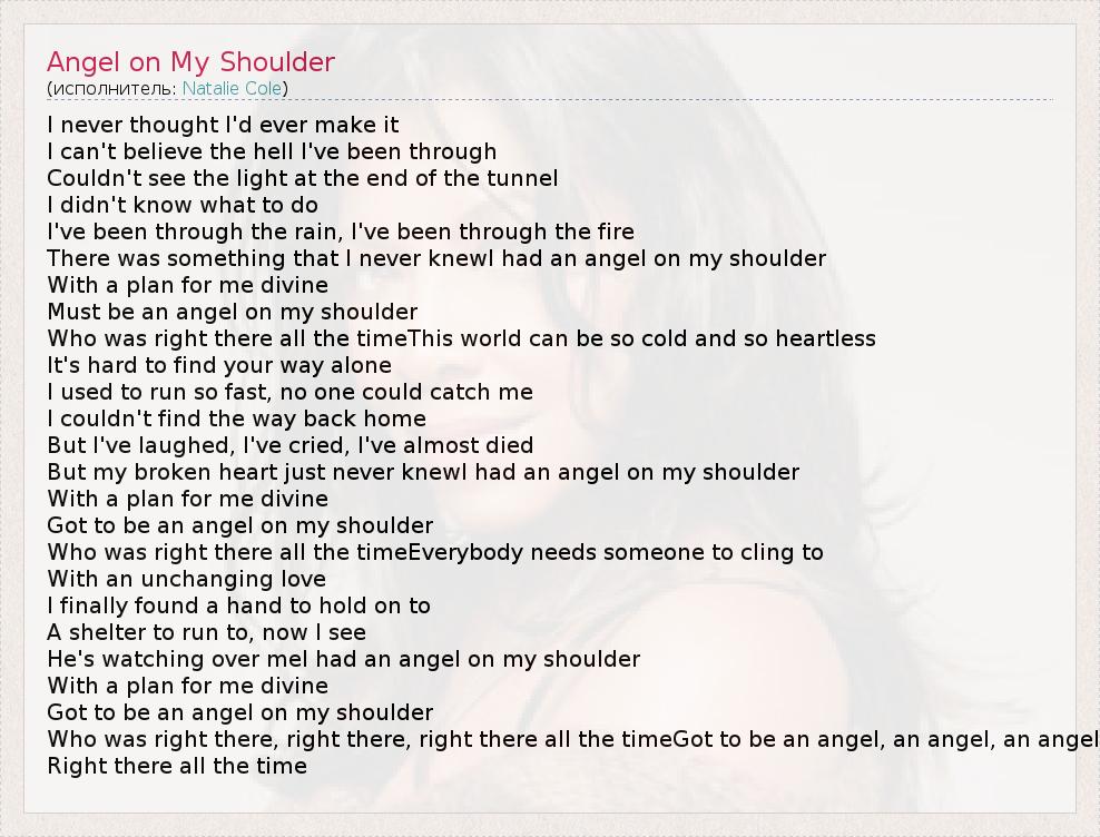 А как ты думаешь, о чем песня "Angel on My Shoulder" ?