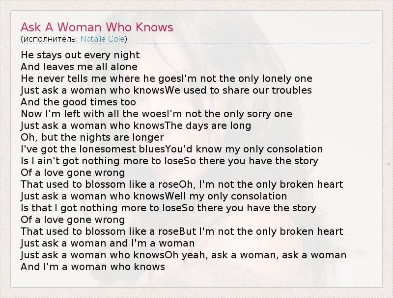 А как ты думаешь, о чем песня "Ask A Woman Who Knows" ?
