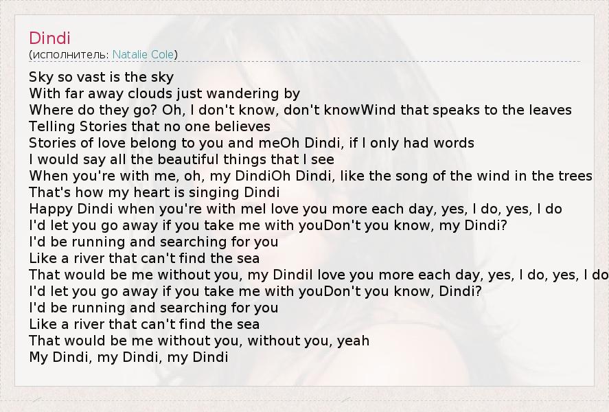 When you're with me, oh, my DindiOh Dindi, like the song of the wind in the trees