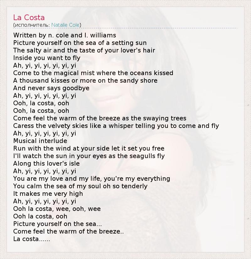 Это интересно:Несмотря на то, что Натали Коул является дочерью знаменитого певца Nat ''King'' Cole, она начала заниматься пением, только после поступления в Университет Штата Массачусетс.Натали начинала свою музыкальную карьеру, с того что писала песни, помимо этого таланта, она была великолепной пианисткой, пела вместе с Chuck Jackson и Marvin Yancy. Их музыка была смесью из различных музыкальных... продолжение