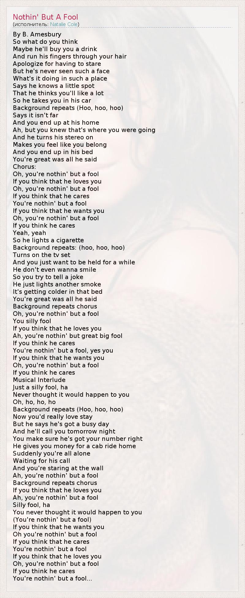 А как ты думаешь, о чем песня "Nothin' But A Fool" ?