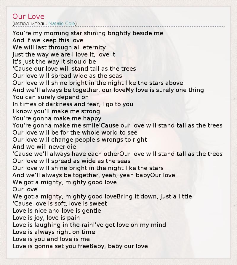 'Cause we'll always have each otherOur love will stand tall as the trees