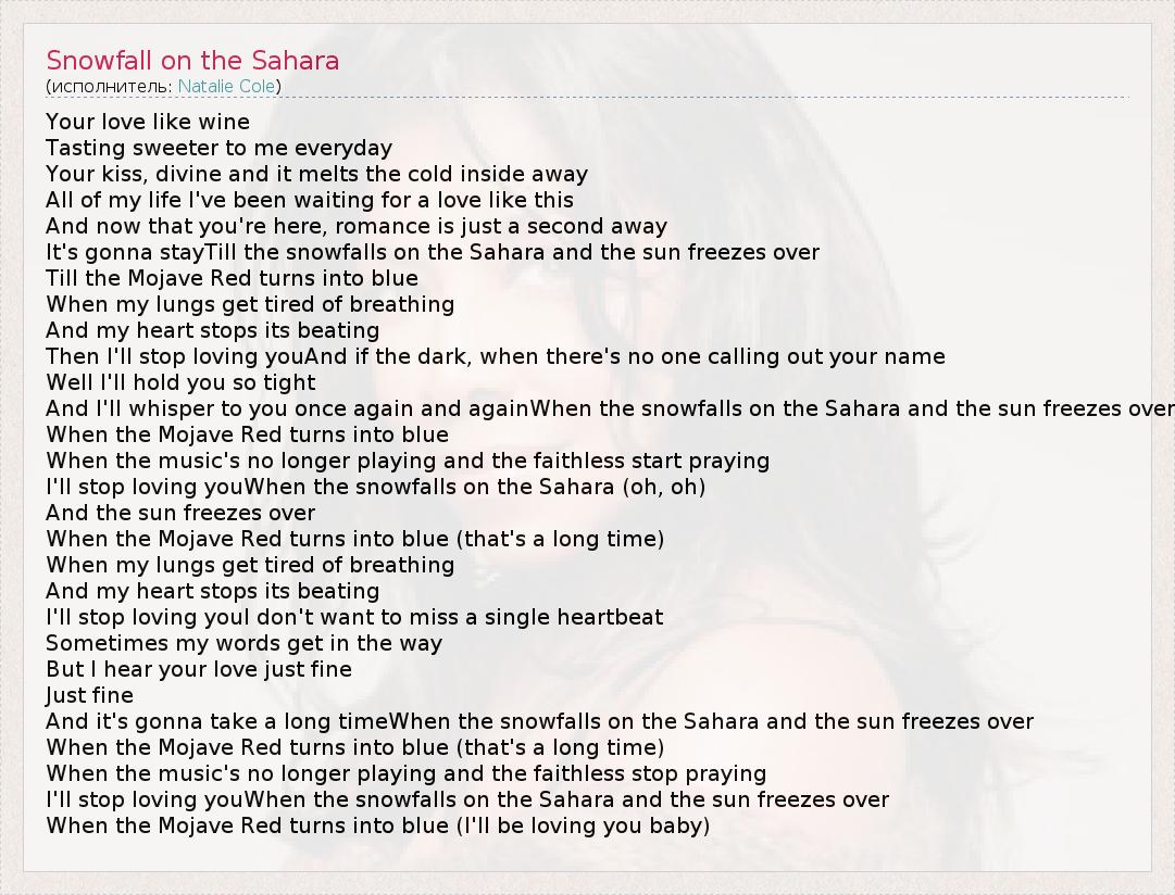А как ты думаешь, о чем песня "Snowfall on the Sahara" ?