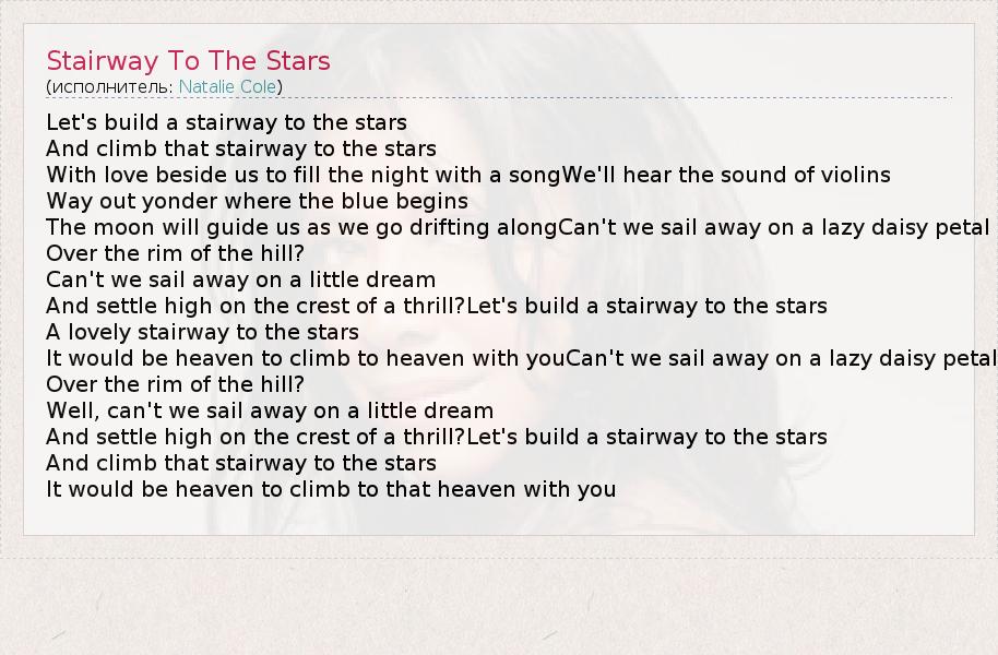 А как ты думаешь, о чем песня "Stairway To The Stars" ?