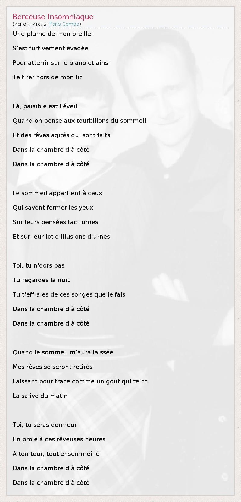 А как ты думаешь, о чем песня "Berceuse Insomniaque" ?