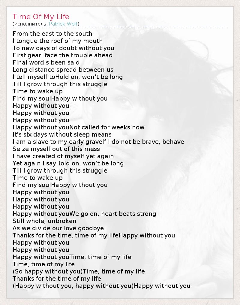 А как ты думаешь, о чем песня "Time Of My Life" ?