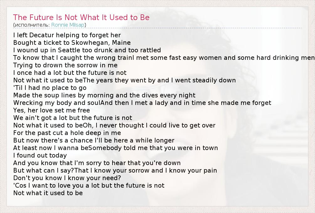 А как ты думаешь, о чем песня "The Future Is Not What It Used to Be" ?