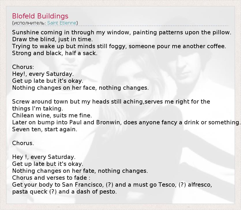 А как ты думаешь, о чем песня "Blofeld Buildings" ?