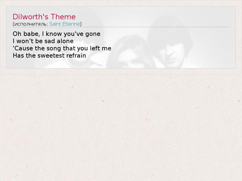 А как ты думаешь, о чем песня "Dilworth's Theme" ?