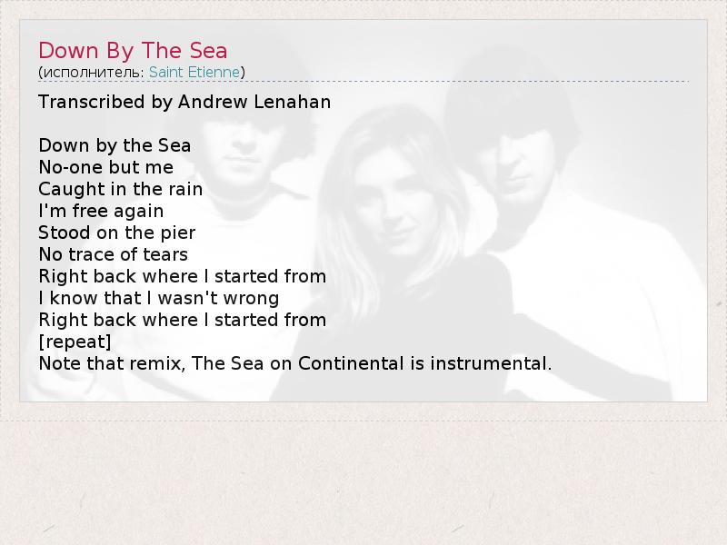 А как ты думаешь, о чем песня "Down By The Sea" ?