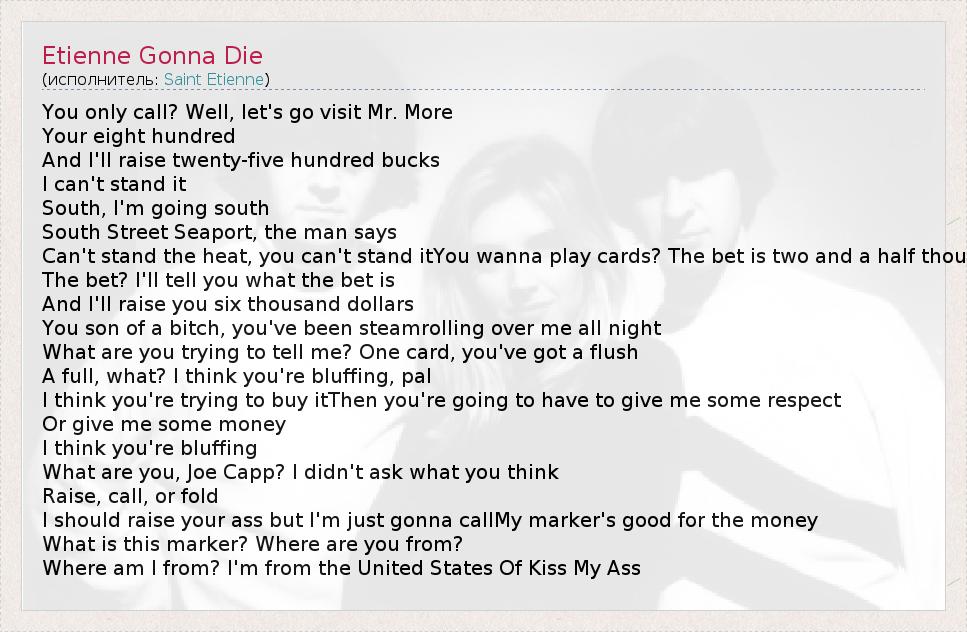 А как ты думаешь, о чем песня "Etienne Gonna Die" ?