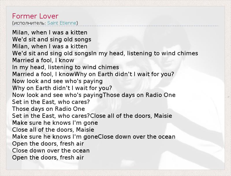 А как ты думаешь, о чем песня "Former Lover" ?