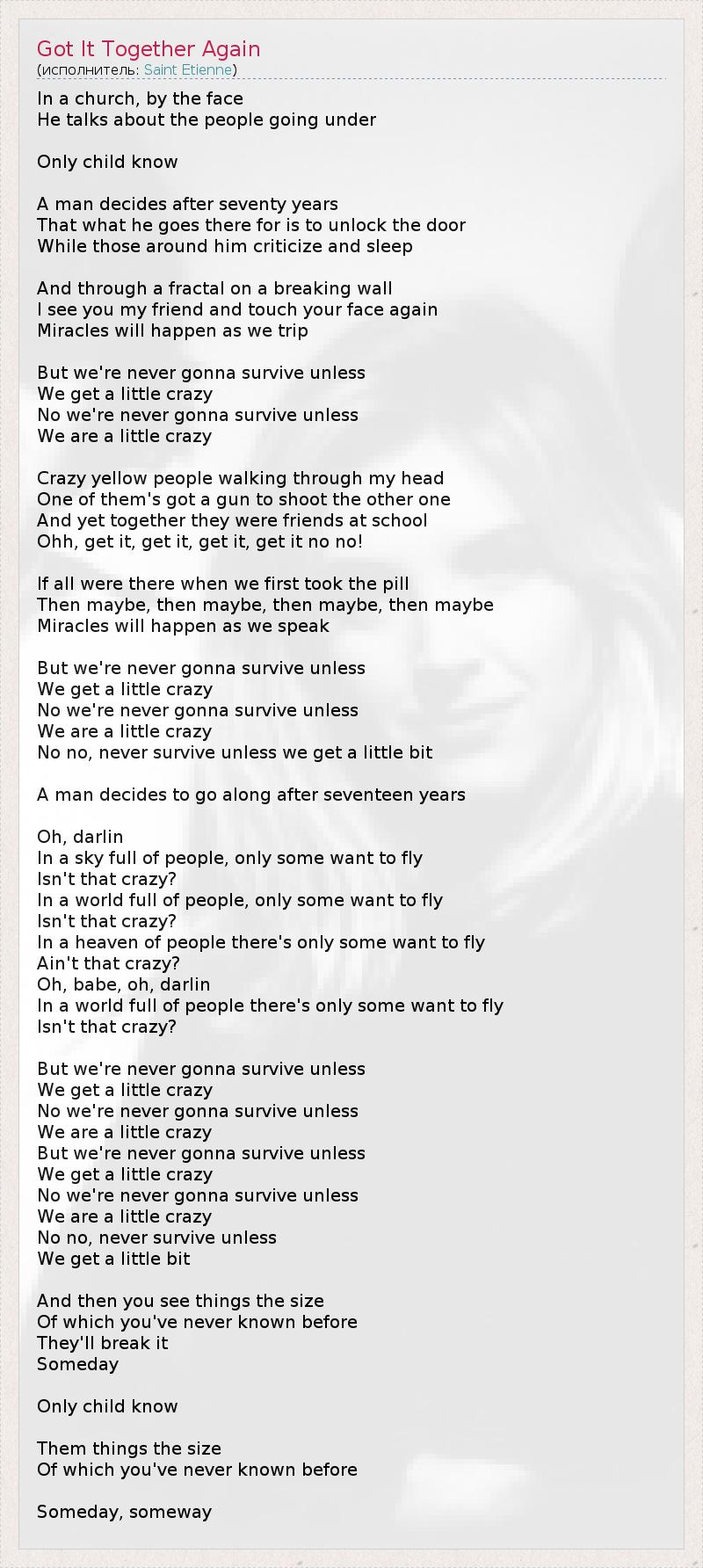 А как ты думаешь, о чем песня "Got It Together Again" ?