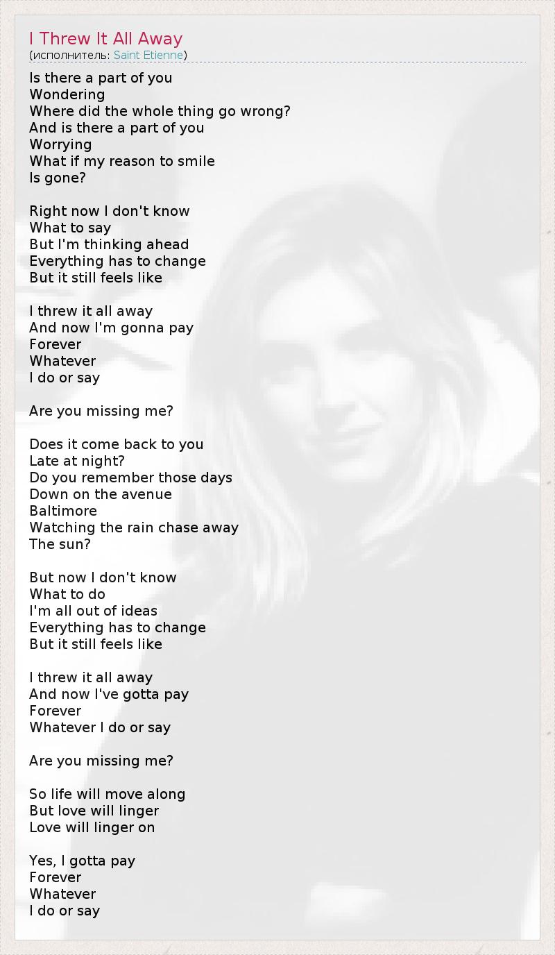 А как ты думаешь, о чем песня "I Threw It All Away" ?