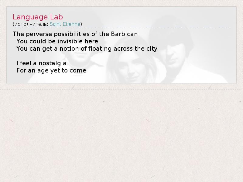 А как ты думаешь, о чем песня "Language Lab" ?