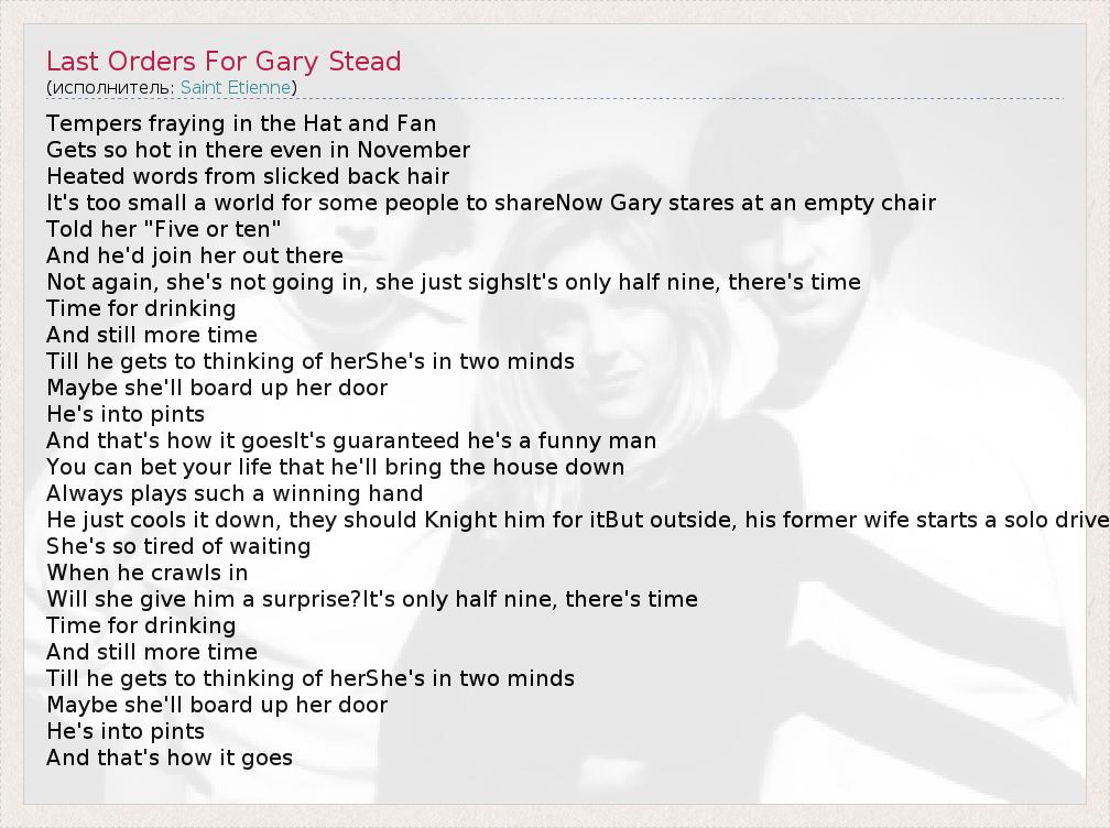 А как ты думаешь, о чем песня "Last Orders For Gary Stead" ?