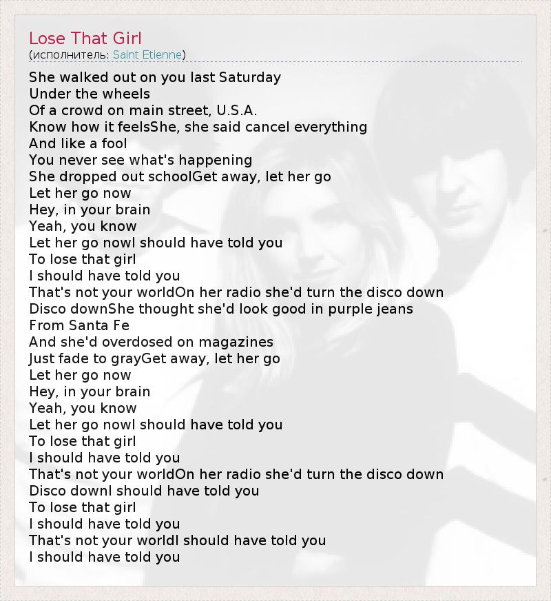 А как ты думаешь, о чем песня "Lose That Girl" ?
