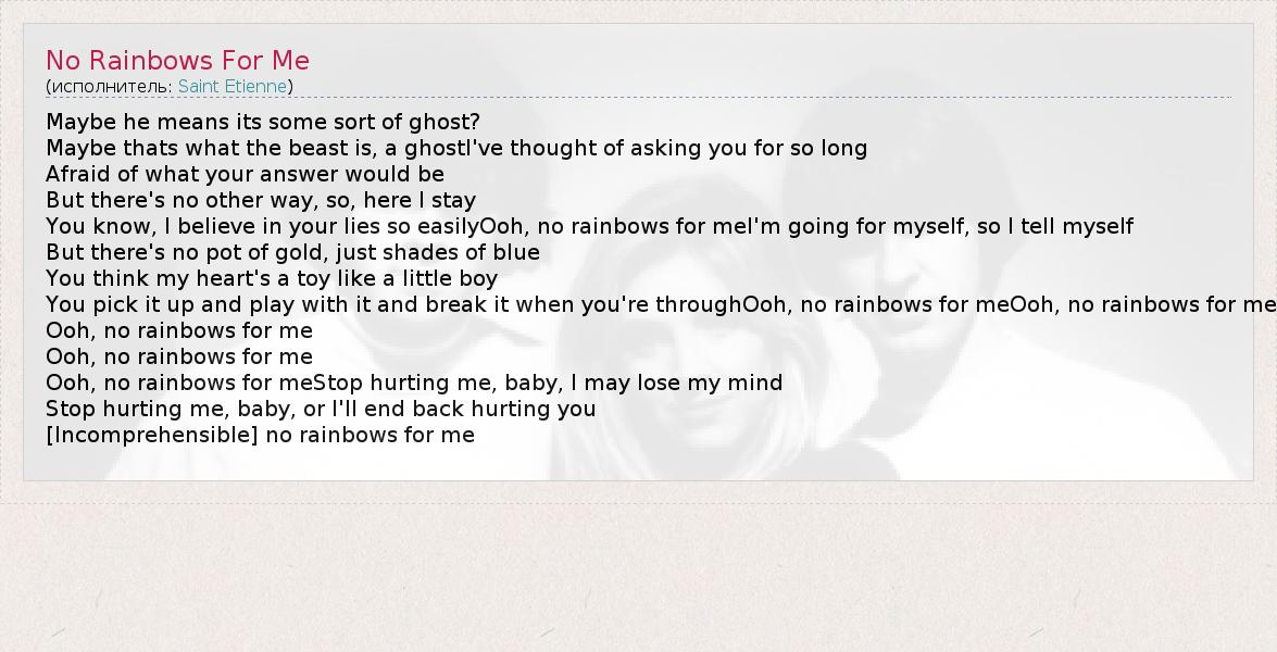А как ты думаешь, о чем песня "No Rainbows For Me" ?