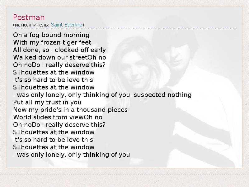 Это интересно:Трудно представить историю британской поп-музыки без «Saint Etienne». Их удивительная способность выпускать пластинки с настроением «шестидесятых» стала главной отличительной чертой группы. Вот уже десять лет «Saint Etienne» по праву занимают место самой стильной группы в Англии. «Музыка дизайнеров и арт-директоров» - такое определение «Saint Etienne» получили из уст одного журналиста. И действительно,... продолжение