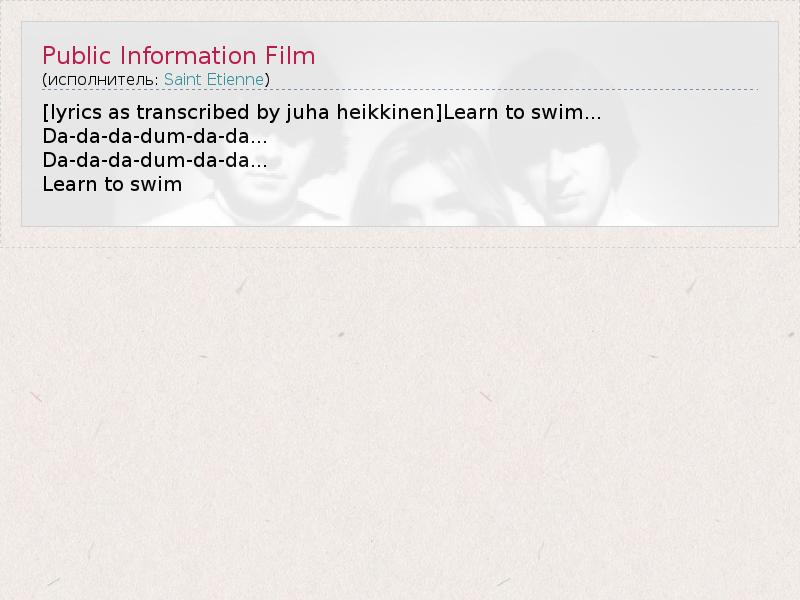 А как ты думаешь, о чем песня "Public Information Film" ?