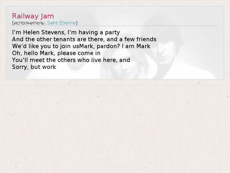 Это интересно:Трудно представить историю британской поп-музыки без «Saint Etienne». Их удивительная способность выпускать пластинки с настроением «шестидесятых» стала главной отличительной чертой группы. Вот уже десять лет «Saint Etienne» по праву занимают место самой стильной группы в Англии. «Музыка дизайнеров и арт-директоров» - такое определение «Saint Etienne» получили из уст одного журналиста. И действительно,... продолжение